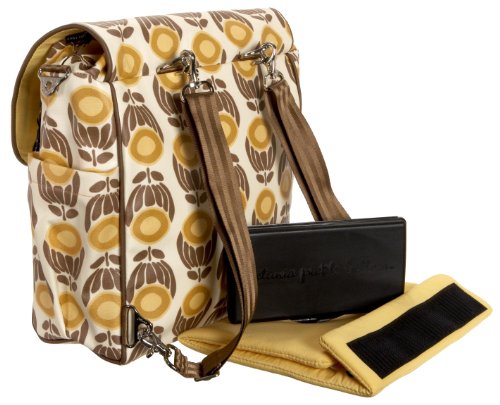 Water-repellant exterior wipes clean and is PVC free and a water resistant lining;Convenient zip out changing station with detatchable pad for easy cleaning;PPB monogrammed plastic wipey case;Backpack or shoulder strps with snap hooks;4 bottle pockets