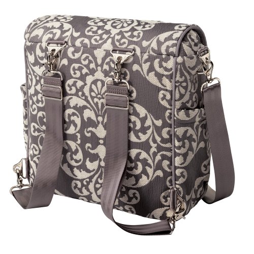 Hands-free backpack or long messenger strap;Built-in changing station with detachable changing pad;2 large diaper/wipes pockets/4 bottle pockets/2 organizational pockets/Small pacifier pocket;Detachable dirty diaper pouch and No more digging key clip
