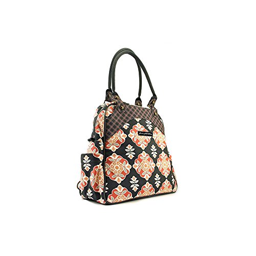 Interior features two organizational pockets, two bottle pockets, one zippered pocket and a no more digging key clip;Padded shoulder handles, two exterior bottle pockets and large magazine pockets with internal cell phone pocket;Converts to backpack for an additional carrying option with convenient storage space for backpack straps when not in use;Removable and wipeable changing pad and PPB monogrammed plastic wipes case;Premium metal logo plate on front;PVC-Free Glazed wipeable exterior;Dimensions: 13.25 L x 15 H x 5.5 W;Care: Wipe clean exterior and spot clean lining with damp cloth.