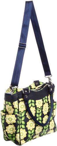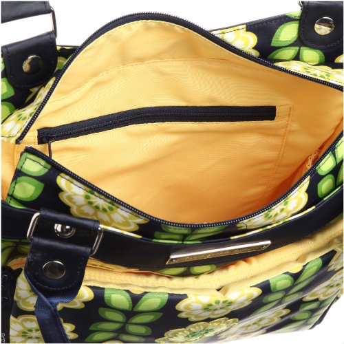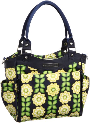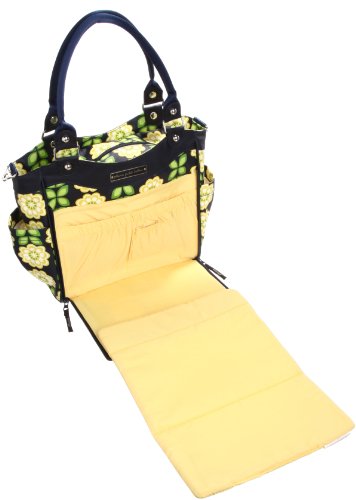 Large interior space with two bottle pockets, one zippered pocket and two organizational pockets;Built-in changing station with detachable changing pad, two organizational pockets and small pacifier pocket;Two outer bottle pockets and two pockets on back for extra storage;Padded tote handles and removable long strap for either messenger-style or shoulder-style carry;PPB monogrammed plastic wipes case