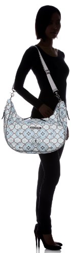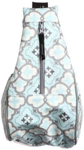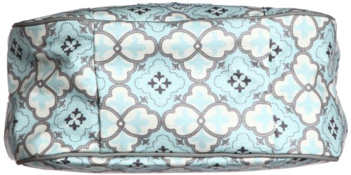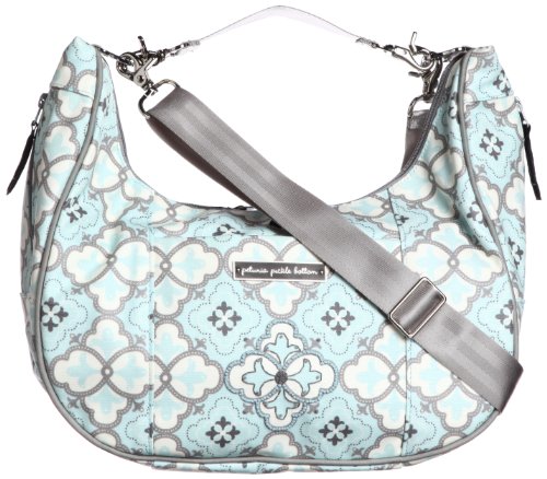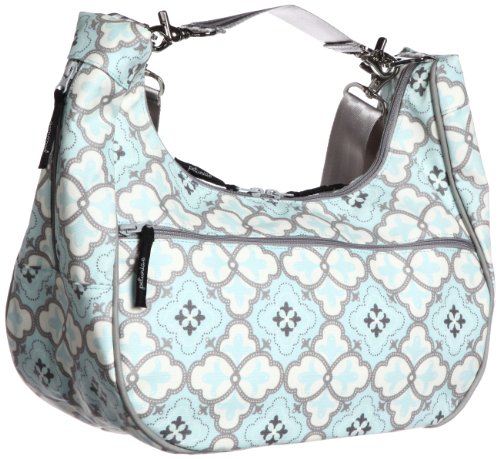 Light sky blue, slate grey and eggshell mosaic-inspired medallion design with light sky blue and slate grey hand embroiderered detail. Slate grey water-resistant linging and straps.;3 carrying options: small hobo, long shoulder, Valet Stroller Clips? (included);Double-headed zipper for easy opening;1 large zippered back pocket with removable changing pad;PPB-monogrammed plastic wipes case