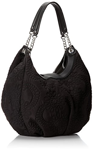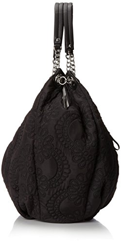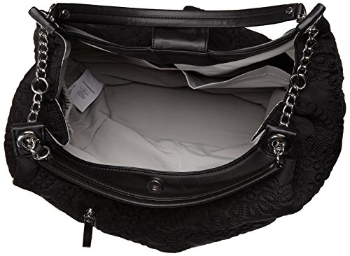 Spacious main compartment with 4 large open pockets and 2 side bottle pockets;Hidden front exterior zippered pocket;Top magnetic snap closure;Custom-stamped premium hardware;2 handles for shoulder carrying, made of vegan leather and polished metal chain