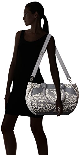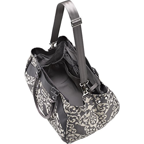 Interior features large main space with 7 organizational pockets and a key clip;Clever side snaps allow interior to expand for additional room;Exterior has 2 smaller pockets for keys or pacifier;Removable changing pad and PPB-monogrammed wipes case;Two carrying options: On shoulder with padded handles or cross-body with long strap