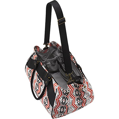 Interior features large main space with 7 organizational pockets and a key clip;Clever side snaps allow interior to expand for additional room;Exterior has 2 smaller pockets for keys or pacifier;Removable changing pad and PPB-monogrammed wipes case;Two carrying options: On shoulder with padded handles or cross-body with long strap