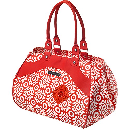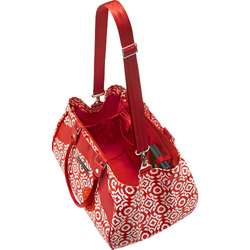 Interior features large main space with 7 organizational pockets and a key clip;Clever side snaps allow interior to expand for additional room;Exterior has 2 smaller pockets for keys or pacifier;Removable changing pad and PPB-monogrammed wipes case;Two carrying options: On shoulder with padded handles or cross-body with long strap