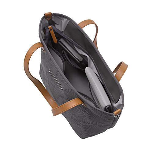 Roomy interior with 4 open pockets, plus 1 with a zipper;Zip-top closure to keep contents secure and exterior zippered back pocket;Removable, water-resistant and washable baby changing pad, PPB-monogrammed wipes case;Vegan leather shoulder straps and trim, stamped logo, premium metal hardware and protective feet;Attaches easily to most strollers with Valet Stroller Clips (sold separately)