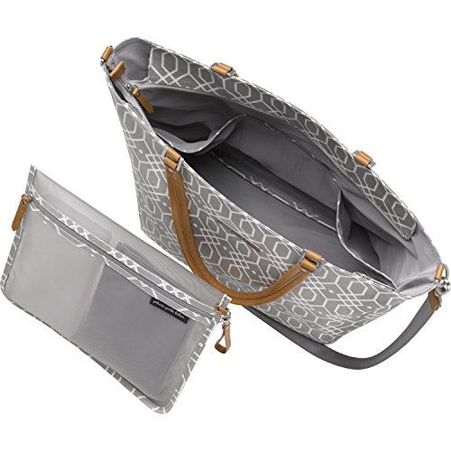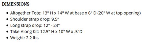 Zip-top closure opens to large main space;6 open interior pockets;Exterior zippered back pocket;Includes a coordinating Take-Along Kit- an easy-to-clean, washable baby changing pad and wipes case (both included), 2-3 diapers and other small changing essentials;Attaches easily to most strollers with Valet Stroller Clips (sold separately)