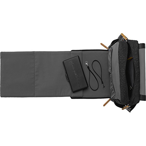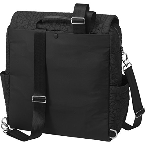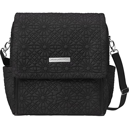 Spacious interior with 5 pockets (2 to stow bottles), a key clip and 2 exterior bottle pockets;Wider zip-open top for quicker access to contents and a top grab-handle for easy toting;Zip-out diaper changing station for baby with removable changing pad and pockets for diapers and wipes. Upgraded hardware and vegan leather detailing;Magnetic front flap closure, plus snaps for added security. Exterior back pocket to store backpack straps when not in use;PPB-monogrammed plastic wipes case and now also includes stroller straps to easily attach bag to most strollers
