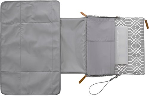 - オムツ替えのマットが付属されたクラッチバッグ。取り外し可能なストラップ2種類、ワイプケース付属