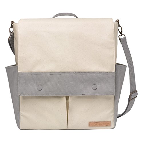 Roomy interior with 2 open pockets and 1 snap-close laptop pocket;2 side exterior bottle pockets, 2 open front pockets, 1 zippered front pocket;Front flap with secure snap closure, Zippered mesh pocket under flap;Removable, water-resistant and washable baby changing pad, PPB-monogrammed wipes case;Genuine leather trim, stamped logo, premium antique copper-colored metal hardware, Woven backpack straps, grab handle and detachable cross-body strap