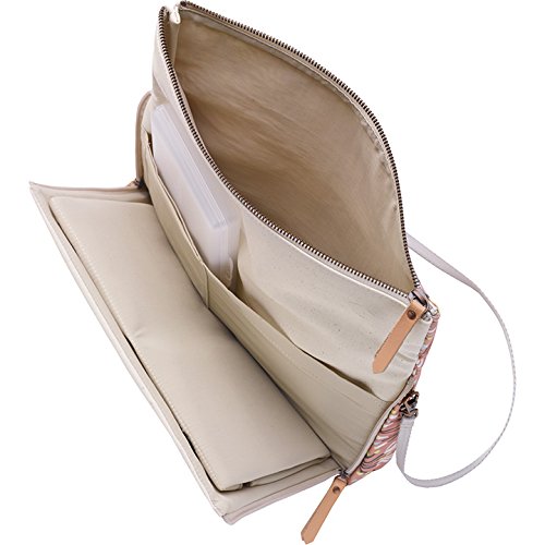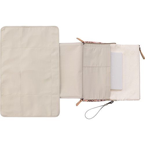 - オムツ替えのマットが付属されたクラッチバッグ。取り外し可能なストラップ2種類、ワイプケース付属