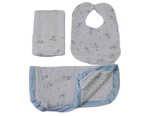 Caught Ya Lookin' Baby Bib with Burp Cloth and Thumb Blanket Set, Puppy/Blue by Caught Ya Lookin'