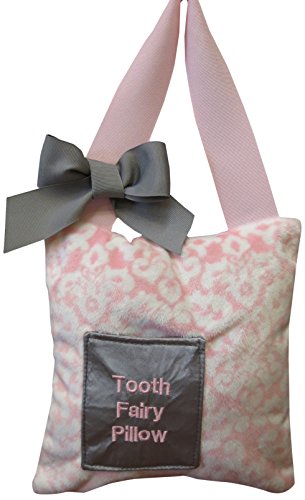 Caught Ya Lookin' Tooth Fairy Pillow, Pink Damask Minky, White, Gray by Caught Ya Lookin'