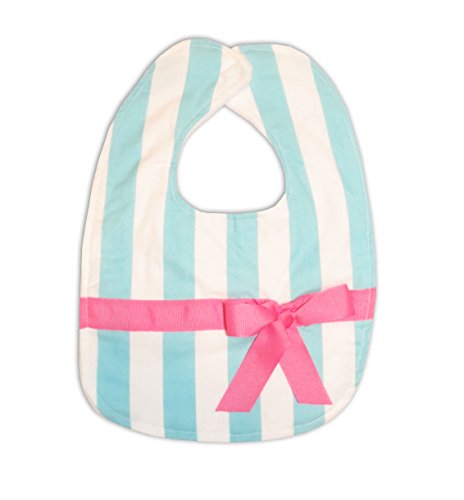 Caught Ya Lookin' Reversible Baby Bib, Blue and White Stripe with Hot Pink Ribbon by Caught Ya Lookin'