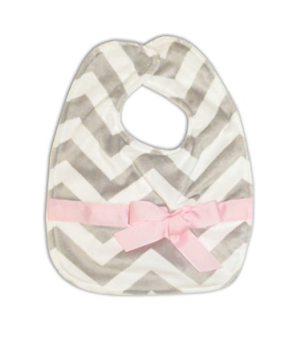 Caught Ya Lookin' Reversible Baby Bib, Grey and White Chevron with Light Pink Ribbon by Caught Ya Lookin'
