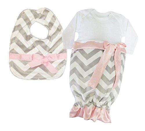 Two piece set offers a bib and infant gown;No snaps make diaper changes quick and easy;Bib measures 9 x 12;Machine washable;Made in USA