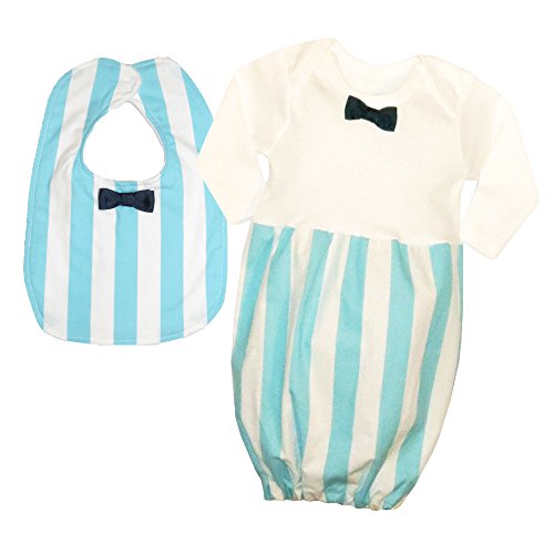 Two piece set offers a bib and infant gown;Bib measures 9 x 12;Machine washable;Made in USA