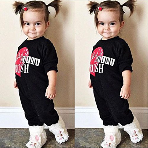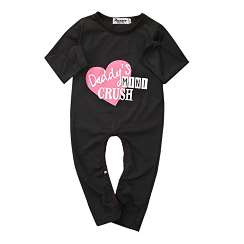 phenovo 赤ちゃん 女の子 コットン100% 服 長袖 ロンパース ボディスーツ 衣装 ブラック 文字パタン 全4サイズ - 70