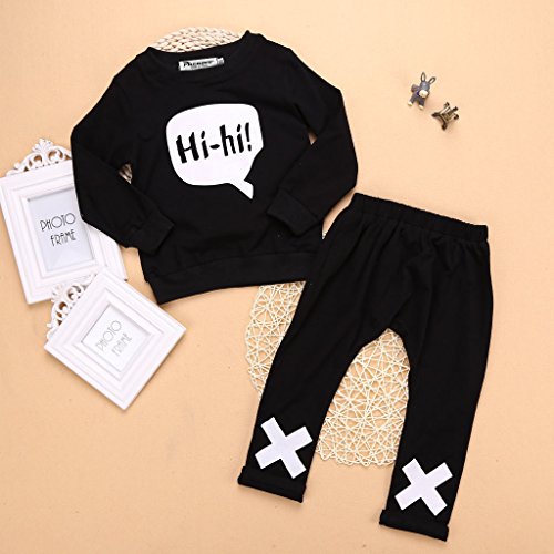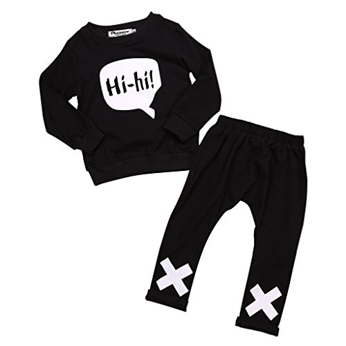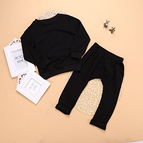 phenovo 0-2歳 赤ちゃん コットン 服 長袖 Tシャツ ズボン 衣装 スーツ ブラック 通気性 柔らかい 全4サイズ - 100