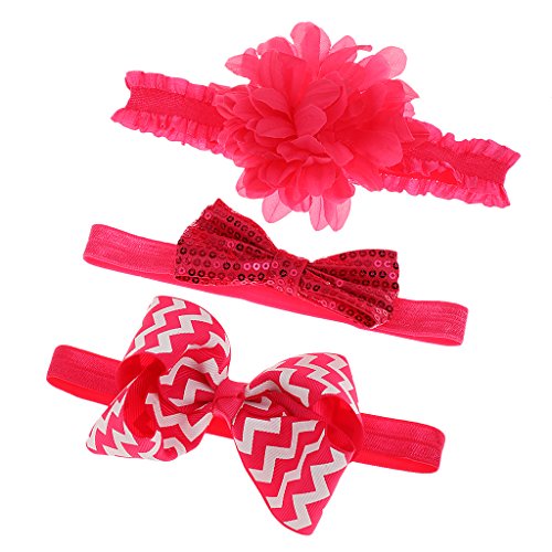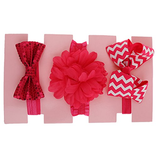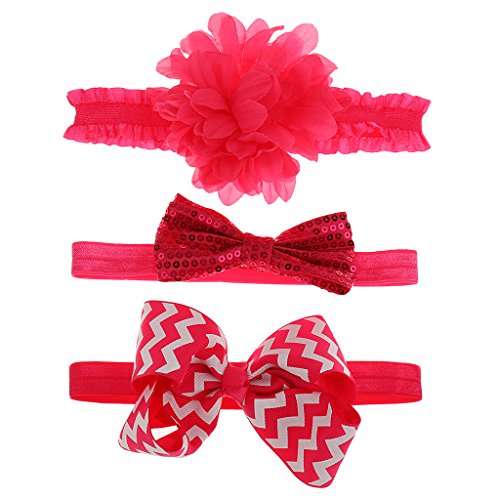 Phenovo 3枚 女の子 赤ちゃん ヘッドバンド 弾性 ヘアバンド ヘアアクセサリー ちょう結び リボン カチューシャ 贈り物 全4色 - 赤