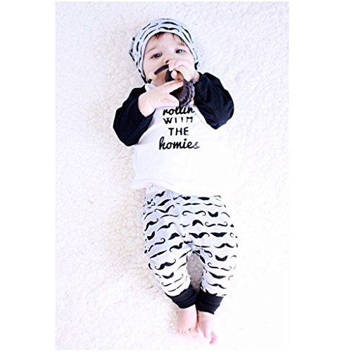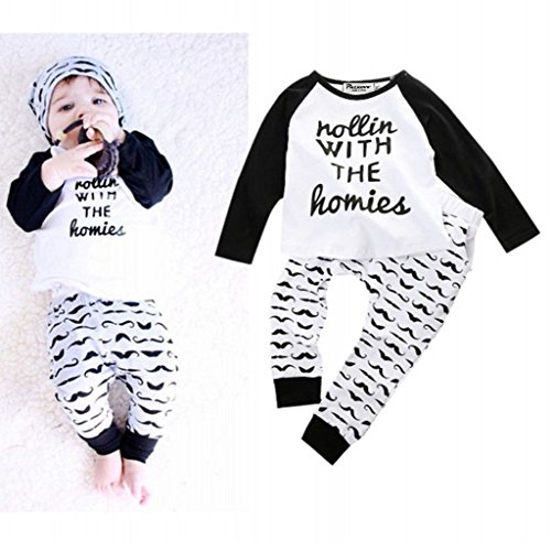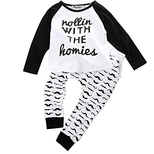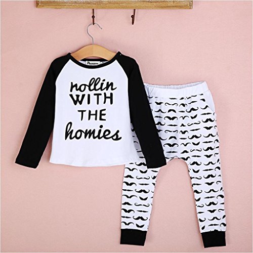 phenovo 赤ちゃん 男の子 長袖 Tシャツ + パンツ 衣装 ひげ 文字プリント コットン 通気性 快適 全4サイズ - 90センチメートル