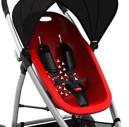 後部シートに3段階のリクライニング機能およびサンフード付き