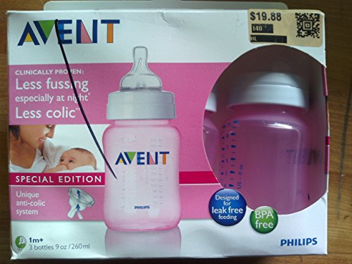 Philips AVENT 9 Ounce BPA Free Classic Polypropylene Bottles, 3-Pack, Pink 哺乳瓶 250ml 3本セット ピンク