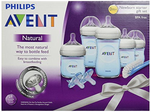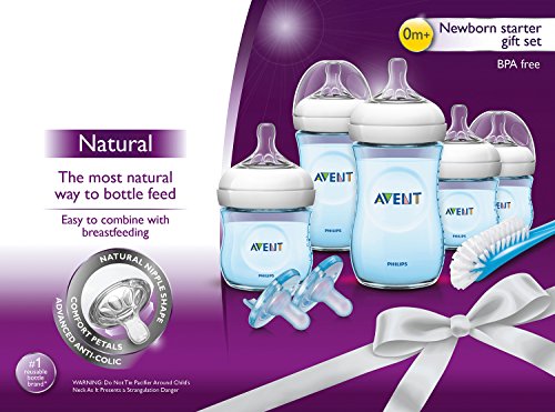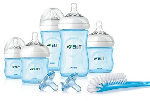 Ideal starter set for the new mom with multiple bottle and nipple sizes and bottle accessories;The most natural way to bottle feed. Natural nipple shape makes it easy for baby to combine with breastfeeding;Soft, wide-shaped nipple promotes natural latch on;Advanced anti-colic twin-valve design reduces colic and discomfort by venting air into the bottle and not baby's tummy;Includes 3 4oz bottles, 2 9oz bottles, Bottle brush, and 2 Soothie pacifiers;Includes: (2) 9 ounce or 260ml natural blue bottles with (2) natural slow flow nipples, (3) 4 ounce or 125 ml natural blue bottles with (3) natural newborn nipples, (1) bottle brush, (2) soothe pacifiers (0-3m);Wide breast-shaped nipples promote natural latch on making it easy to combine breast and bottle feeding, while unique comfort petals increase softness and flexibility without nipple collapse;Advanced anti-colic system features innovative twin-valve design reducing colic and discomfort by venting air into the bottle and not baby's tummy;Bottle brush features curved brush head and molded tip for thorough cleaning of hard to reach areas;Soothe pacifiers, used by medical professionals to calm newborns, feature high durability, hospital grade silicone and one piece construction