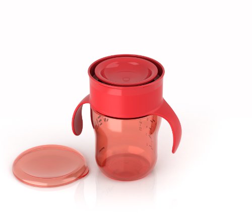 360°すべての方向から飲み物を飲めてる幼児用マグです。独自構造により、倒しても逆さまにしてもこぼれません。便利なハンドル付き。
