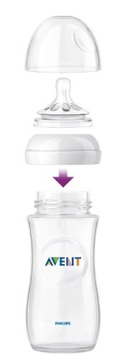 Philips AVENT SCF696/27 Natural 11 Ounce Bottle is the most natural way to bottle feed. The wide, breast-shaped nipple on the Natural bottle promotes natural latch-on so you can easily combine breastfeeding and bottle feeding. The unique comfort petals inside the nipple increase softness and flexibility without nipple collapse, and the innovative twin valve anti-colic medium-flow nipple helps infants feed comfortably and easily. The ergonomic shape makes it comfortable for parents to hold and easy for small fingers to grasp. Assembly is simple with only a few parts and the wide bottle neck makes filling and cleaning easy. The Natural bottle is made from polypropylene, a BPA free material, and works with all nipples and caps from the Natural line.