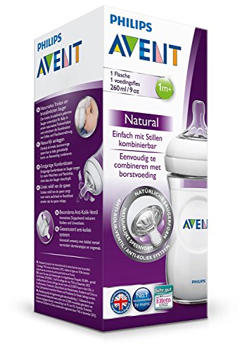 Philips AVENT SCF693/47 Natural 9 Ounce Bottle is the most natural way to bottle feed. The wide, breast-shaped nipple on the Natural bottle promotes natural latch-on so you can easily combine breastfeeding and bottle feeding. The unique comfort petals inside the nipple increase softness and flexibility without nipple collapse, and the innovative twin valve anti-colic slow-flow nipple helps infants feed comfortably and easily. The ergonomic shape makes it comfortable for parents to hold and easy for small fingers to grasp. Assembly is simple with only a few parts and the wide bottle neck makes filling and cleaning easy. The Natural bottle is made from polypropylene, a BPA free material, and works with all nipples and caps from the Natural line.