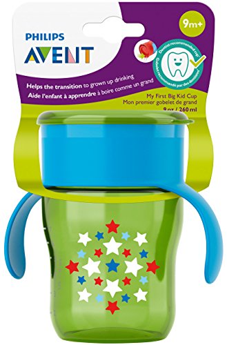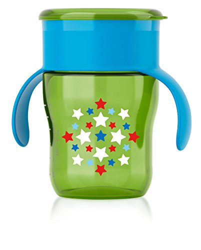 カラフルなグリーンのボトルに星の模様をお届けします。Philips Avent My Natural Drinking Cup, 9 Ounce, Green/Blue/Red, Stage ☆子供の唇が蓋にあたるときにのみ液体が流れます ☆蓋に圧力がかかっていないときは、バルブが閉じてこぼれることがありません ☆開いた大人のカップのように、縁のどこからでも飲むことが可能です ☆BPAフリー、食器洗い機で安全に洗浄いただけます