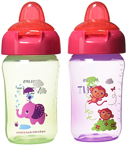 The Philips Avent SCF555/23 BPA-free My Sip N Click cup features a snap-top lid for hygienic drinking and leak-free transport. The leak-proof technology in the soft silicone spout means liquid only comes out when pressure is applied to it, ensuring a mess-free drinking experience. The cup container holds 12oz of liquid, making it the perfect size drinking solution for your growing toddler; and the cup's cute animal decorations will be sure to excite your little one. All pieces are dishwasher safe for easy cleaning. For your convenience, this cup is compatible with the Philips Avent My Easy Sippy spouts, Classic+ nipples, and with the full bottle and cup portfolio (with exception of the My Natural Drinking Cup range).