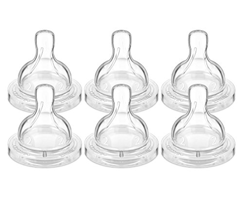 Includes 6 slow flow nipples ideal for newborn and breastfed babies;Naturally shaped nipple makes it easier to transition from breast and bottle feeding;Anti-colic valve promotes active feeding and reduces fussiness and colic with less air in baby's tummy;Available is 5 different flow rates to grow with your baby