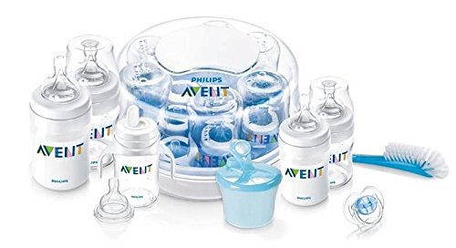 フィリップスAVENTクラシックEssentialsのギフトセットは、新しい親が安全、簡単に給餌し、殺菌のために必要なすべてを提供します。このキットに含まれる4つのBPAフリーのクラシックボトルの各々は、赤ちゃんのおなか、より快適な給餌の経験が少ない空気が疝痛を軽減ニップル内臨床的に証明された抗疝痛バルブを備えています。エクスプレスマイクロ波滅菌器は、2分で6ボトルをきれいにします。このキットには、古典的な乳首、ボトルto一杯トレーナー、旅行に最適のミルクパウダーディスペンサー、ボトル洗浄ブラシ、および新生児シリコンおしゃぶりが付属しています。