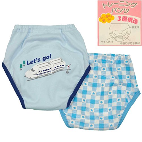 ボーイズベビー下着[Pianissimo]ベビートレーニングパンツ2枚組|3層構造|トイレトレーニング|トレパン|チェック|新幹線柄|男の子 90cm ブルー-ブルー