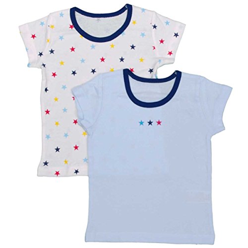 ボーイズ|ベビー|下着[babys dream]綿100% 肌着半袖丸首シャツ2枚組|星柄|フライスシャツ|インナー|柄違いシャツ2枚組|男の子 95cm サックス-ホワイト