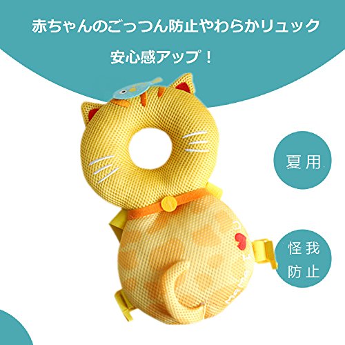 Pichidr 赤ちゃんのごっつん防止やわらかリュック 可愛いリュック キッズ 乳幼児用 頭を保護できる 怪我防止 よちよち歩きの赤ちゃんにぴったり 夏用 イエローネコ