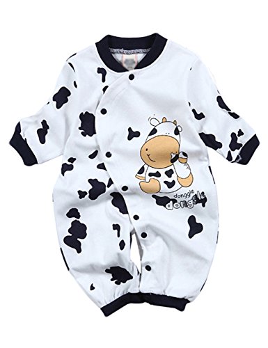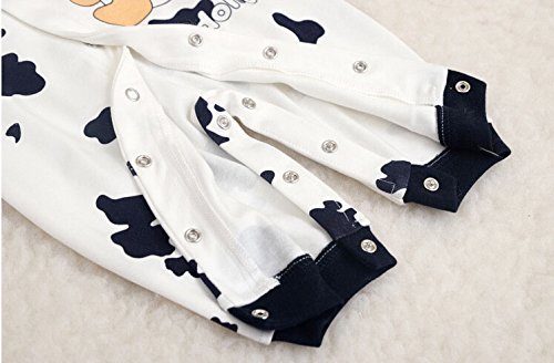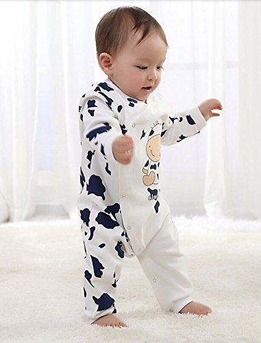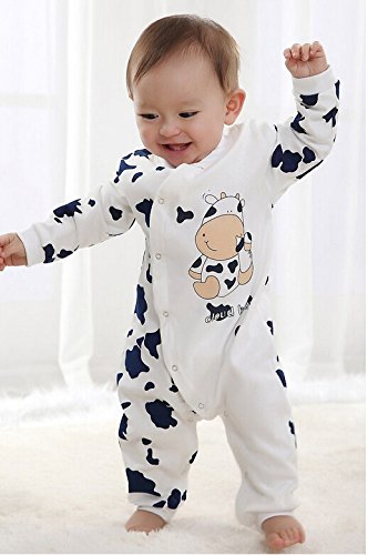 かわいい ベビー長袖 アニマル 乳牛 ロンパース (80(3-6ヶ月), 青)