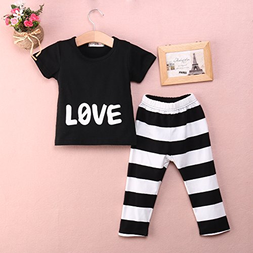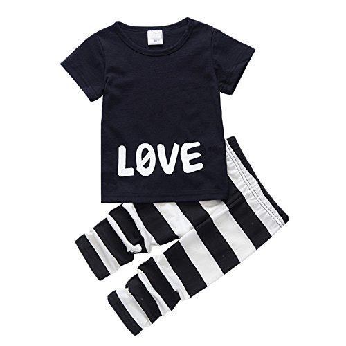 英字ロゴ love 子供服 ベビー服 シャツ ロングパンツ 上下セット かわいい 男女兼用 ボーダー lovely baby おしゃれ 欧米風 大ブーム (90(12-18ヶ月))