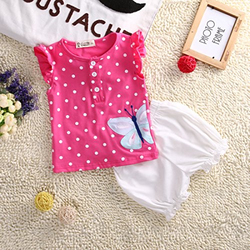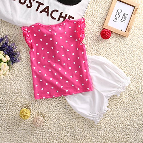 幼児服セット ドット花プリント半袖 t シャツ + ブルマ パンツ スーツ (90(1-2歳), ピンク)