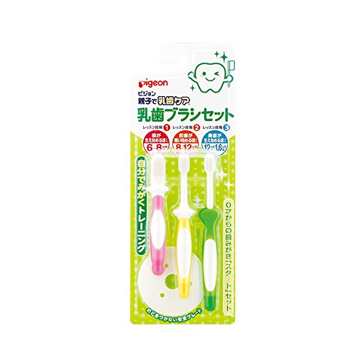 赤ちゃんの成長にあわせて、歯みがき習慣をレッスンする歯ブラシのセットです。