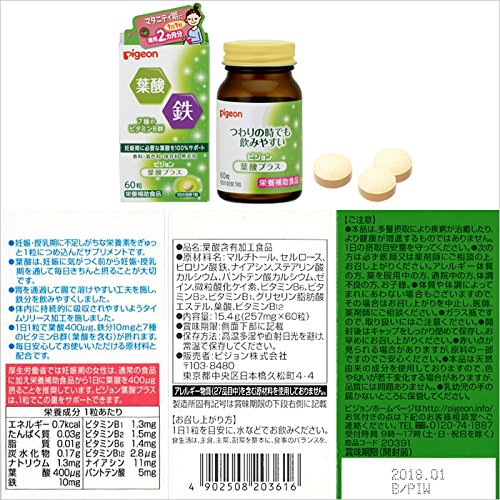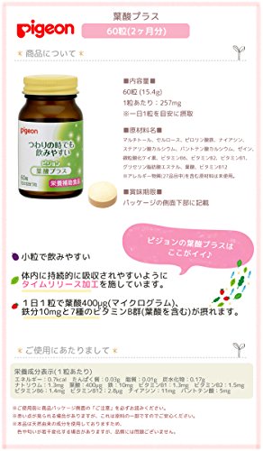 Pigeon (ピジョン) 葉酸サプリメント 妊娠中 栄養 鉄 ビタミンB群 サプリ 葉酸プラス 60粒【20391】