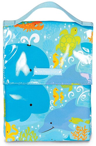 The GoGo Lunch Sack - 'Under The Sea' is the ideal choice to carry a sandwich or snacks. Perfect for school, travel or picnics. Food stays safe and fresh in this BPA, Lead and Phthalate-free insulated carry-all. Perfect on it's own and also designed to complement other food items in the Piggy Story collection including the GoGo Lunch Sack and Carry-along Bottle Bag. The Piggy Story is a manufacturer of gift, travel and accessory products for children. Each original story pattern starts with a drop of imagination and then is artfully drawn into a colorful fabric that captures a story to spur imagination and creativity. Parents appreciate that every product is affordable, durable and practical. The Piggy Story - Designed To Capture Young Imaginations!.