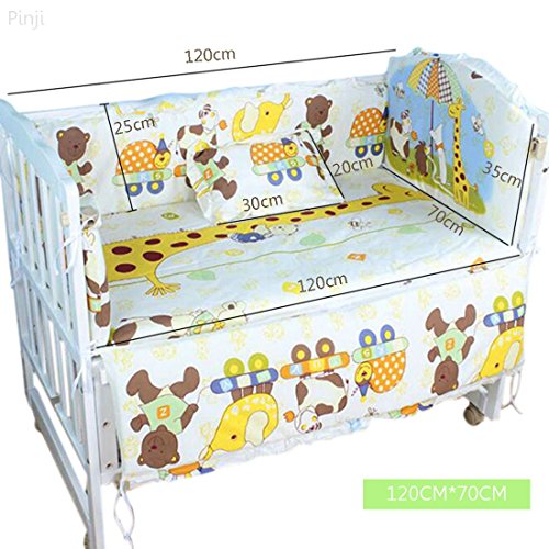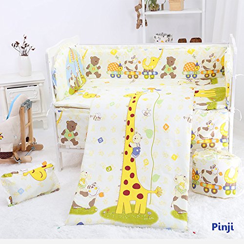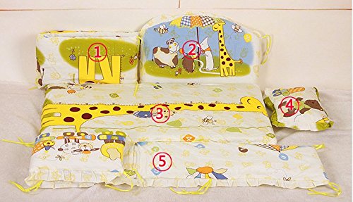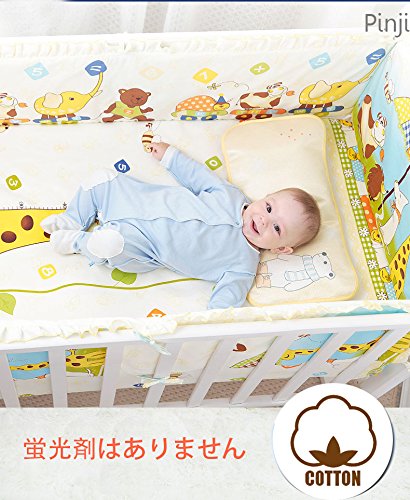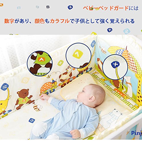 Pinji ミニベビーベッド ガード ベッドバンパー 半周タイプ 出産お祝い かわいい ベッドガードパット 5点セット (キリン L)