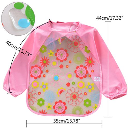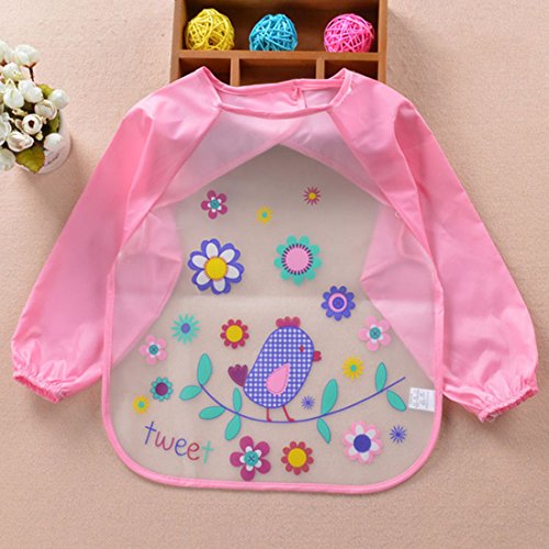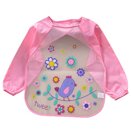 スモック 長袖 幼稚園 おしゃれ 保育園 エプロン 防水 子供スモック ベビービブ こども スモック 食事用 お絵かき用 泥遊び用 エプロン 6ヶ月 4歳鳥柄 (ピンク)