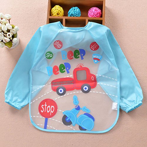 スモック 長袖 幼稚園 おしゃれ 保育園 エプロン 防水 子供スモック ベビービブ こども スモック 食事用 お絵かき用 泥遊び用 エプロン 6ヶ月 4歳 車柄(ブルー)