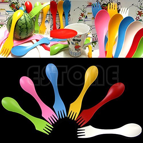 pink-day 6pcsプラスチックキャンプハイキング先割れスプーンスプーンナイフフォークコンボ旅行カトラリー用品