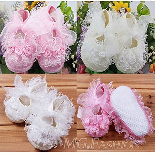 Material:Lace&Cotton cloth.;Pretty non-slip baby girl Shoes with beautiful lace.;Princess style girl shoes, beautiful and fashionable.;Cute and soft, keep your baby wear comfortable.;3 size available, Ideal for 3-6-9-12 month baby