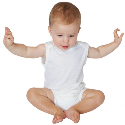 ニュージーランドの高級メリノウール100%を使った袖なしのロンパースです。